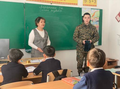 Кәсіптік бағдар беру барысында метебімізге Қазақстан республикасының Ұлттық ұлан Академиясынан мектеп түлегі Қинаятов Манарбек оқушылармен кездесіп әңгіме жүргізді.