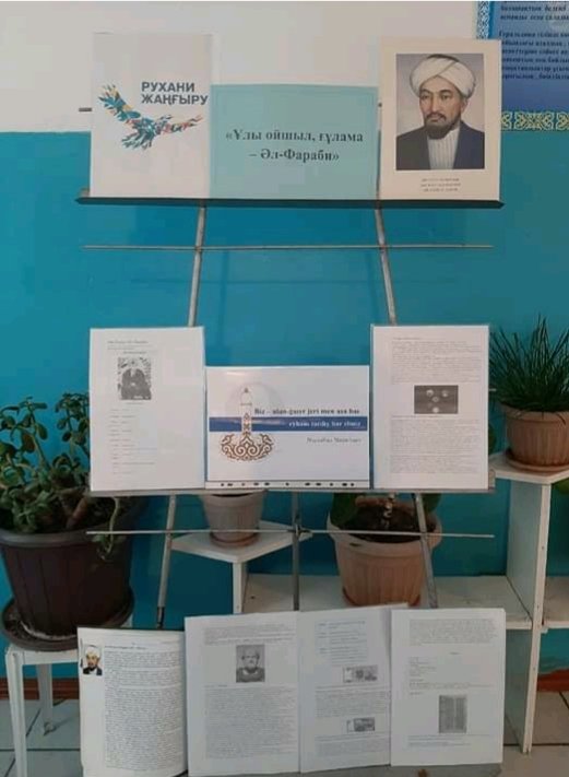 Біздің мектеп кітапханашысы Жунусова С.А ұлы ойшыл Әбу Насыр Әл- Фарабидің 1150 жылына арналған кітап көрмесін ұымдастырды.