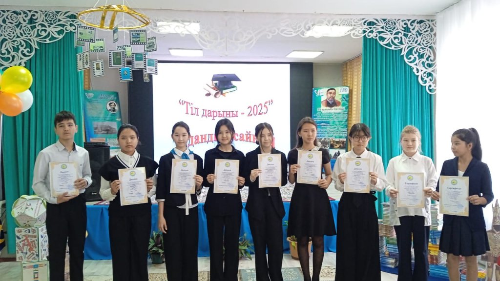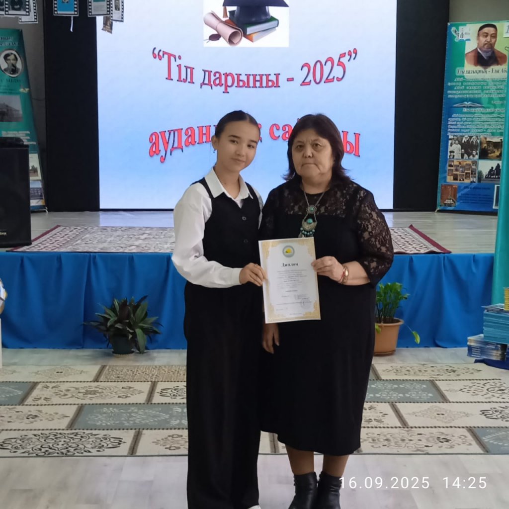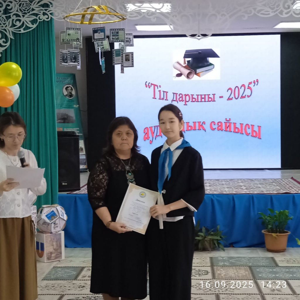 Азат ауылының жалпы орта мектебінде Тілдер мерекесіне орай ұйымдастырылған жалпы білім беретін мектептері 7-11 сынып оқушылары арасында аудандық "Тіл дарыны-2025" байқауына 9 сынып оқушысы Дәулет Нұрсая және 7 сынып оқушысы Әділ Жұлдызай белсене қатысып жүлделі орындарға ие болды. Құттықтаймыз!!!
